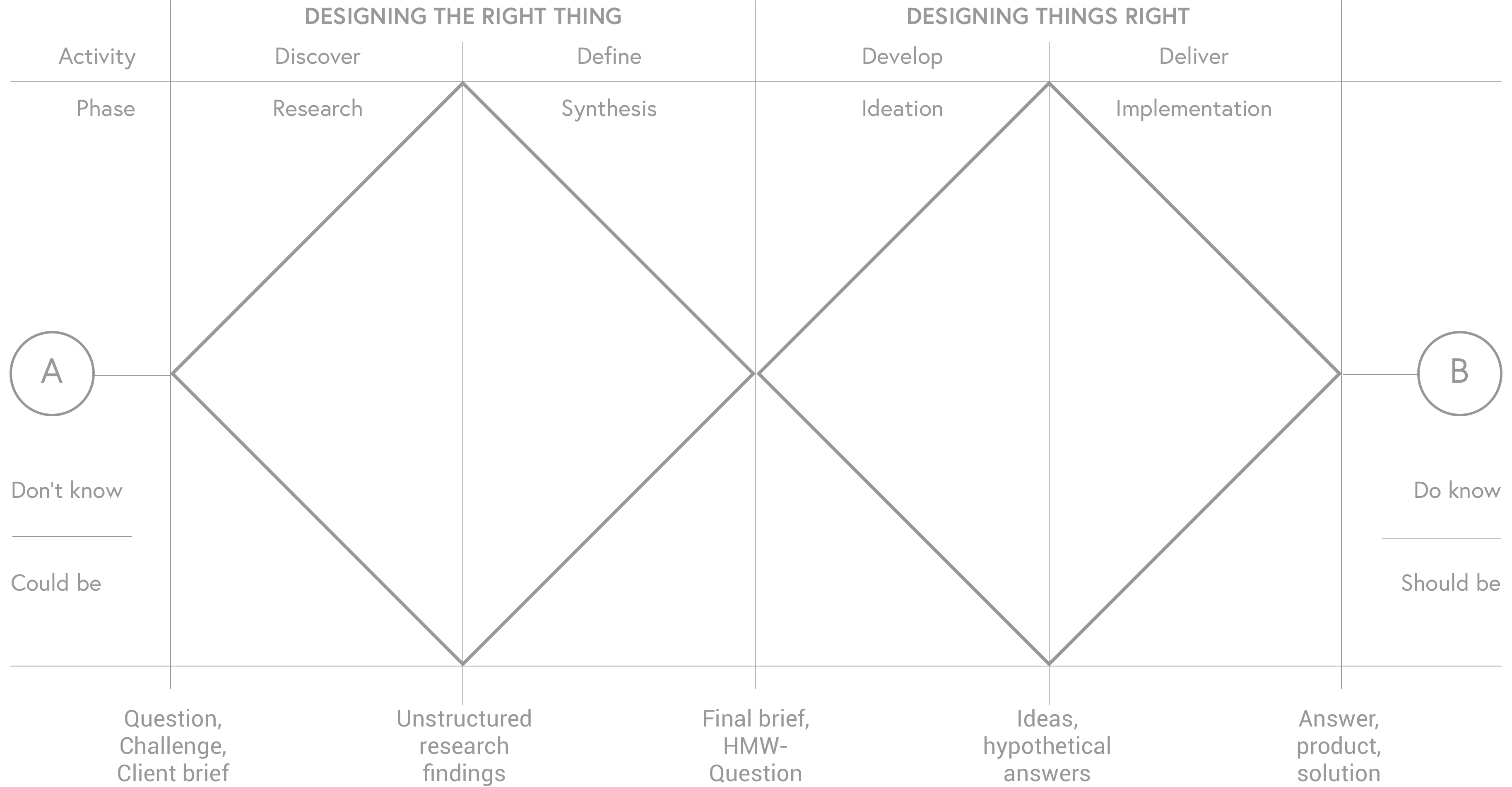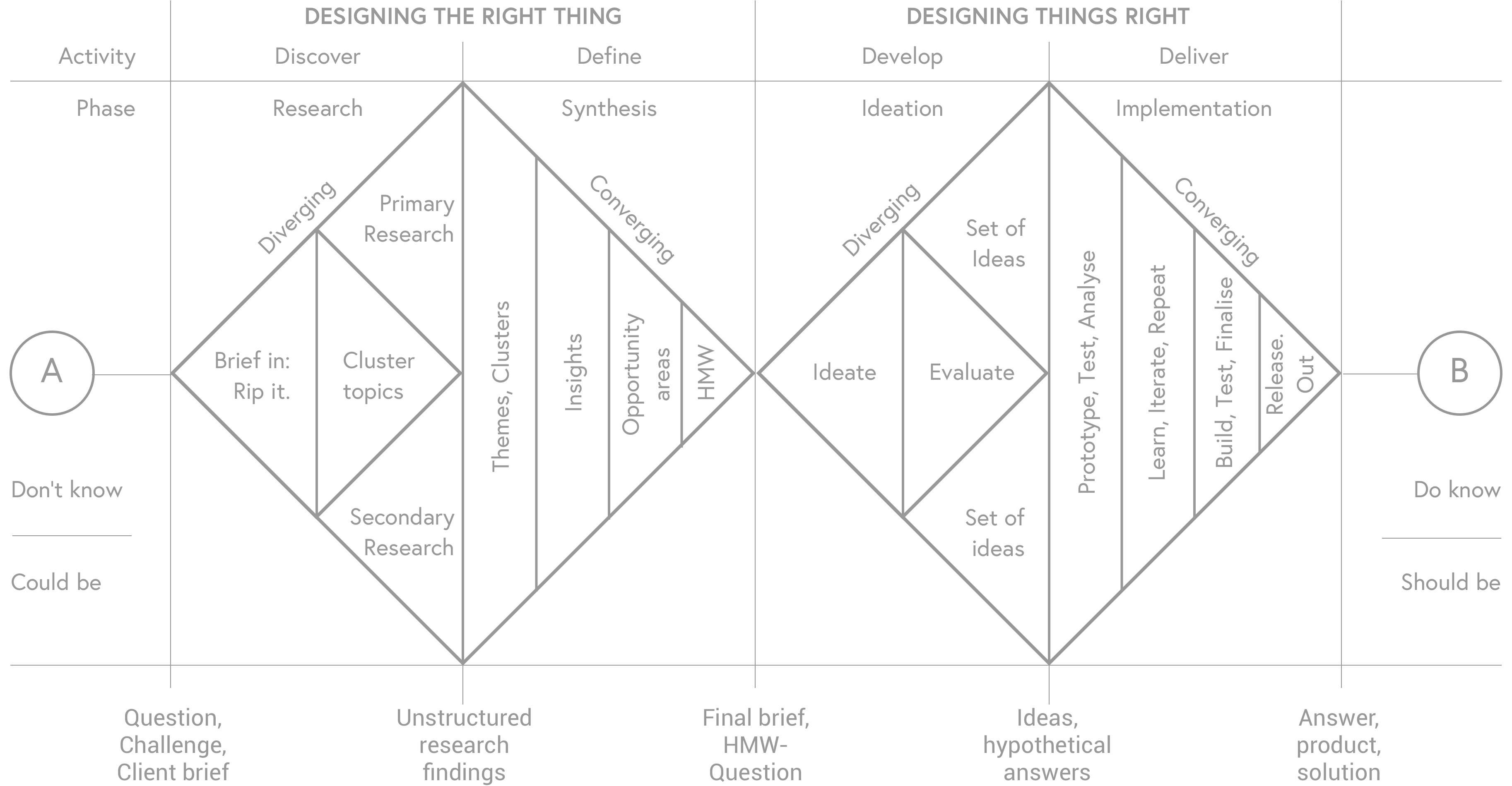 The core question in almost any creative or design project is how to get from point A â âDonât knowâ or âCould beâ â to point B â âDo knowâ or âShould beâ. This process might seem finite and straightforward at first sight.