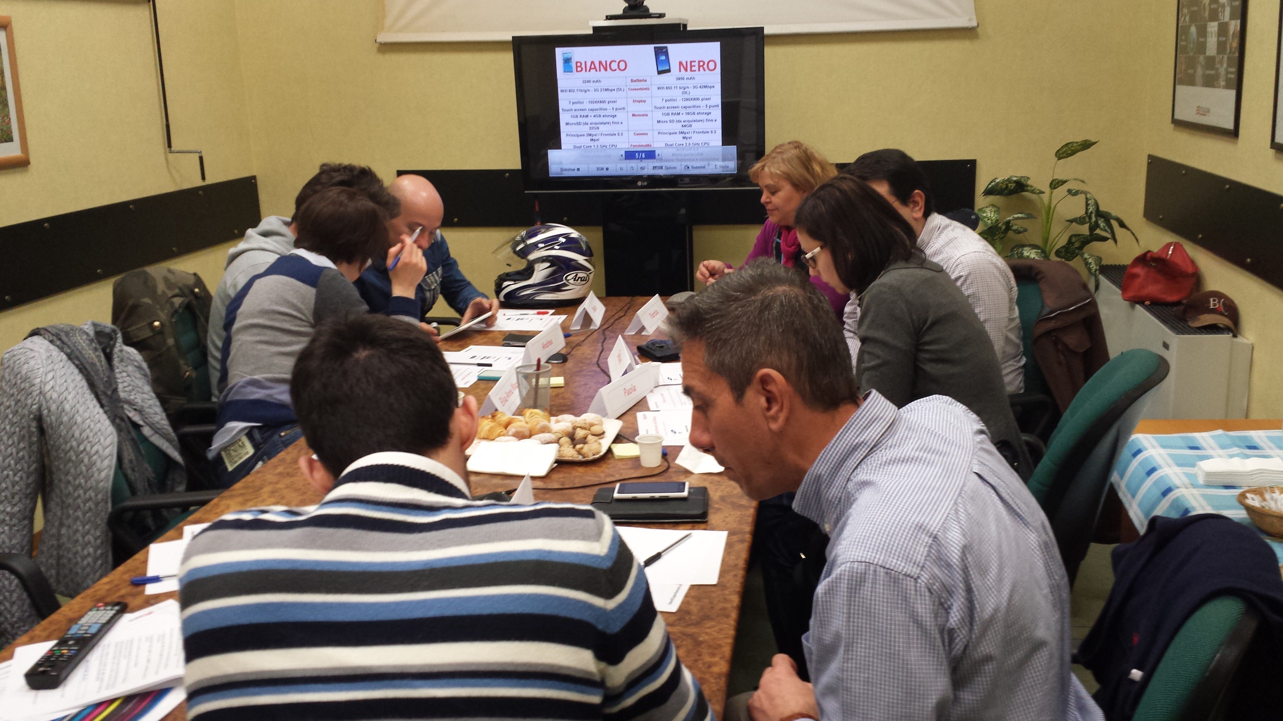 Groups of 5–10 participants are lead through a discussion about a set of topics, giving verbal and written feedback through discussion and exercises. Image credit: telecomitalia
